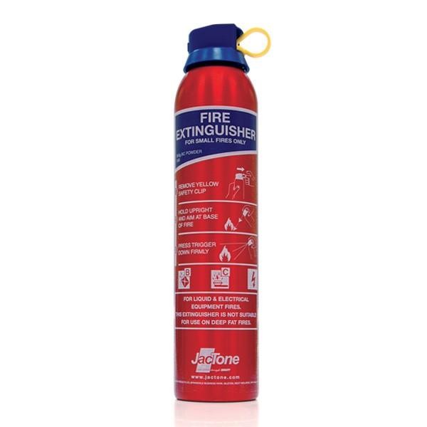 The stored pressure ABC powder aerosol extinguisher is suitable for use on class A, B and C fires meaning that it’s ideally suited for domestic and leisure use. Also highly effective against petrol and volatile liquids, which make them an ideal vehicle fire extinguisher.