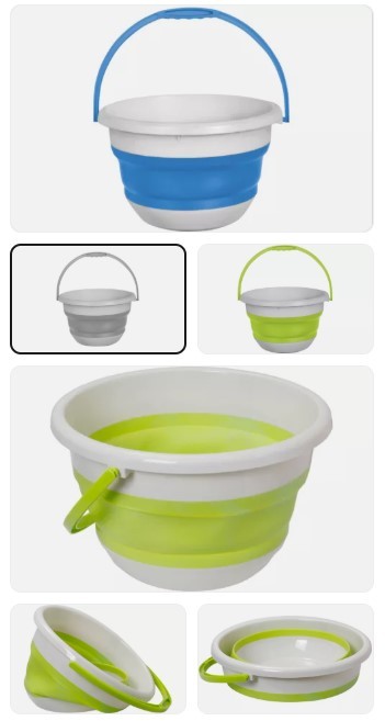 New collapsible bucket made of heat-resistant, shatter-proof and easy to clean TPE. Can be folded up to save space when not in use.