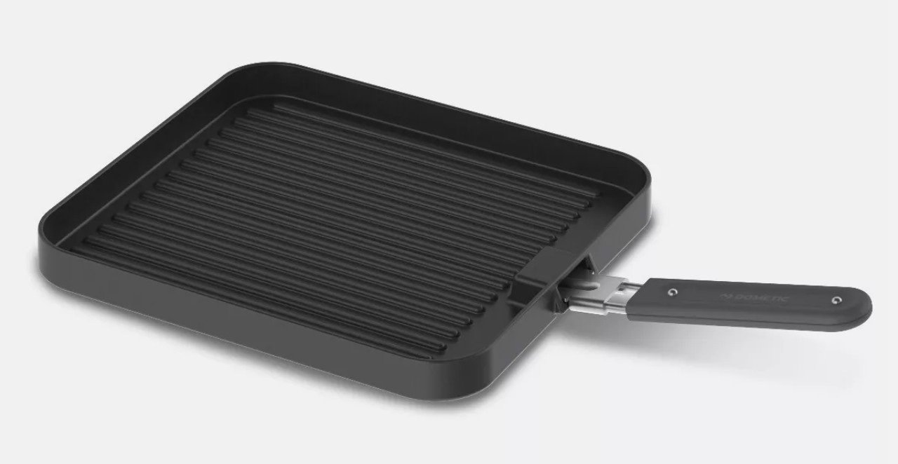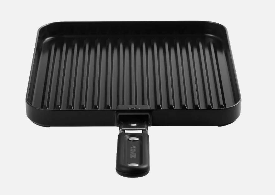A universal ribbed grill plate that is suitable for all brands of stoves, including the Cadac Dometic 2 Cook range.