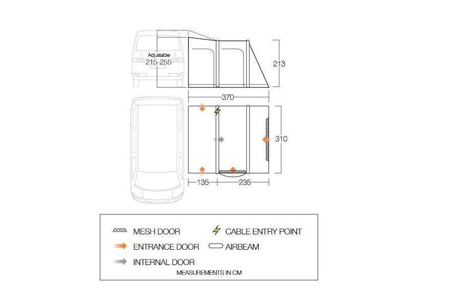 - Inflatable AirBeam® Structure – With 10 years’ experience in AirBeam® technology, we are the leaders in pole free pitching. AirBeam® technology ensures your awning is erect within a matter of minutes (supplied with AirBeam® pump)