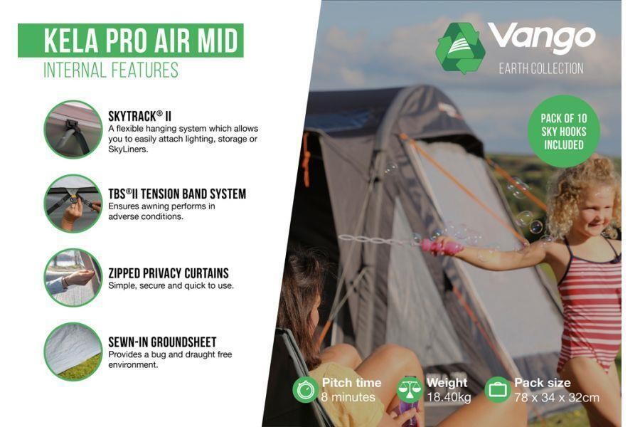 An excellent space to spend time with friends and family, the hugely popular Vango Kela drive away awning inflates in a few minutes leaving you with more time to enjoy your break. Designed to attach effortlessly to the side of your vehicle, the Kela has 4 attachment options and the tunnel space creates the ideal storage area or corridor, so you can keep your awning and vehicle clean and dry. Whatever your adventure, the Kela will be there at the end of the day.