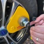 The new Milenco Alpha Wheel Lock works by utilising the caravan chassis receiver.