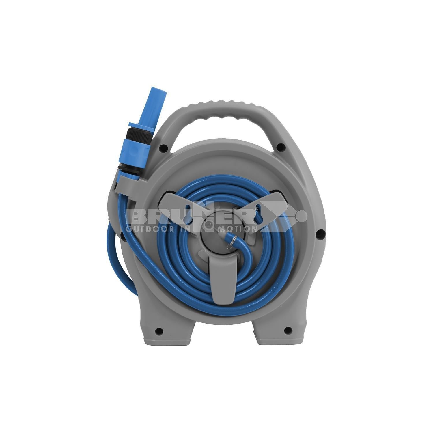 New compact hose reel that is particularly suitable for recreational vehicles. Ideal for filling water tanks or washing the vehicle, but also very useful for watering plants and flowers during your stay at the campsite. Modern design with rounded shapes and low weight to optimise transportability and storage. Robust plastic housing with integrated handle.