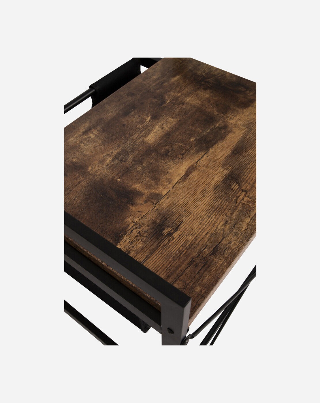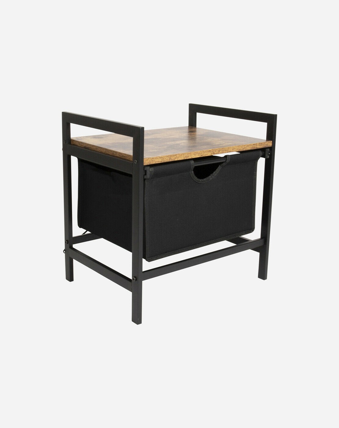 - Stylish cabinet with an industrial look and wood look top.