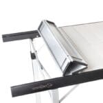 The new Quadra aluminium table range with rollable top features a new totally new folding frame, which is based on the classic table construction with 4 vertical legs. The gapless table top is connected to the table frame with a special quick-locking mechanism. In contrast to the classic folding tables with an x-frame, the Quadra offers enough leg clearance on all 4 sides. Easy and quick setup. Modern design combined with improved functionality. A carry bag for comfortable transport is included.