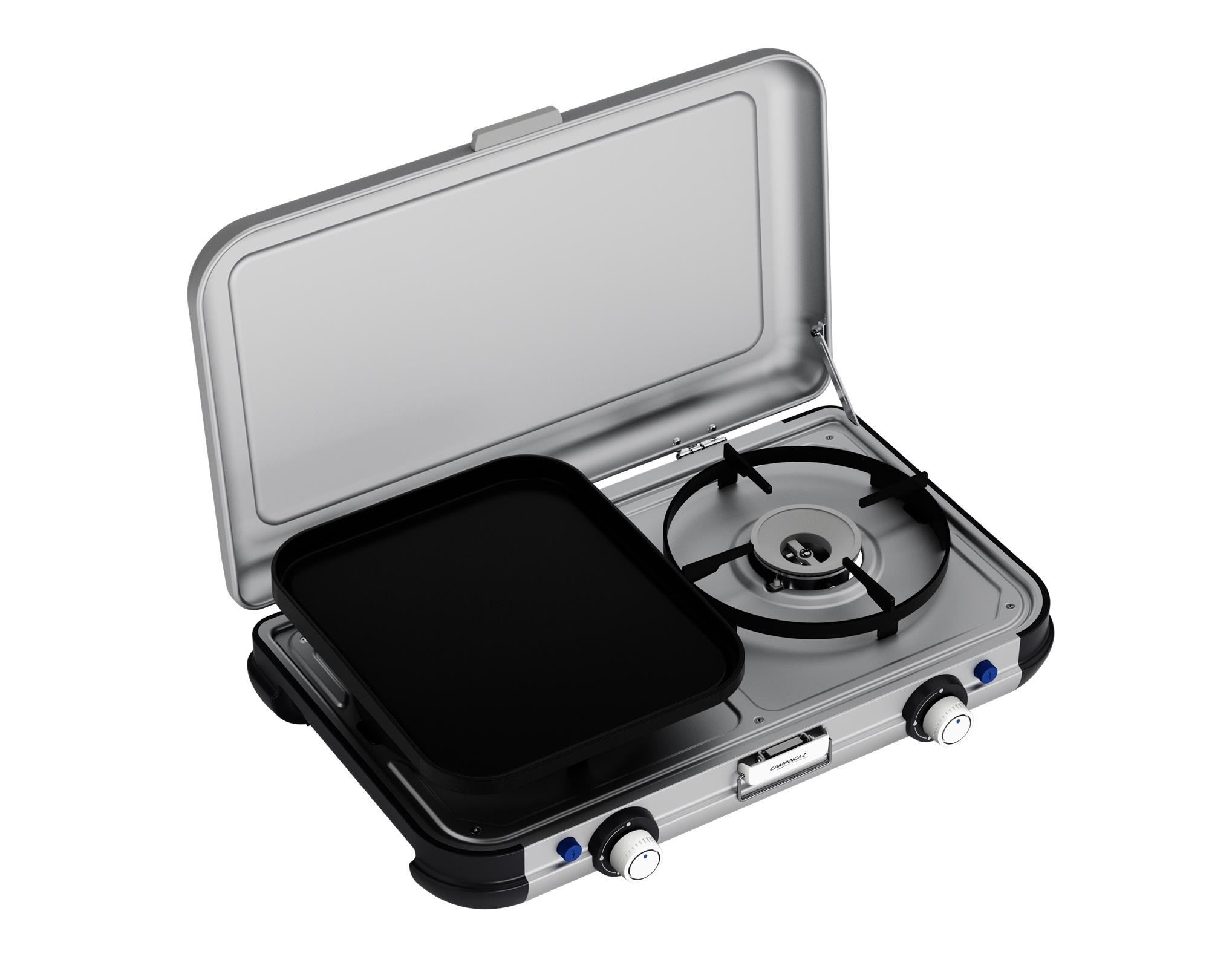 The new Camping Kitchen 2 Grill & Go is a compact and versatile cooking & grilling companion. The 2 burner stove with interchangeable searing grids and plancha gives you the flexibility to support all food preparation needs. Whether life takes you on an adventure or relaxing with family and friends in the comfort of your home, the carefully designed carry bag gives you the ability to cater when grilling inspiration hits.
