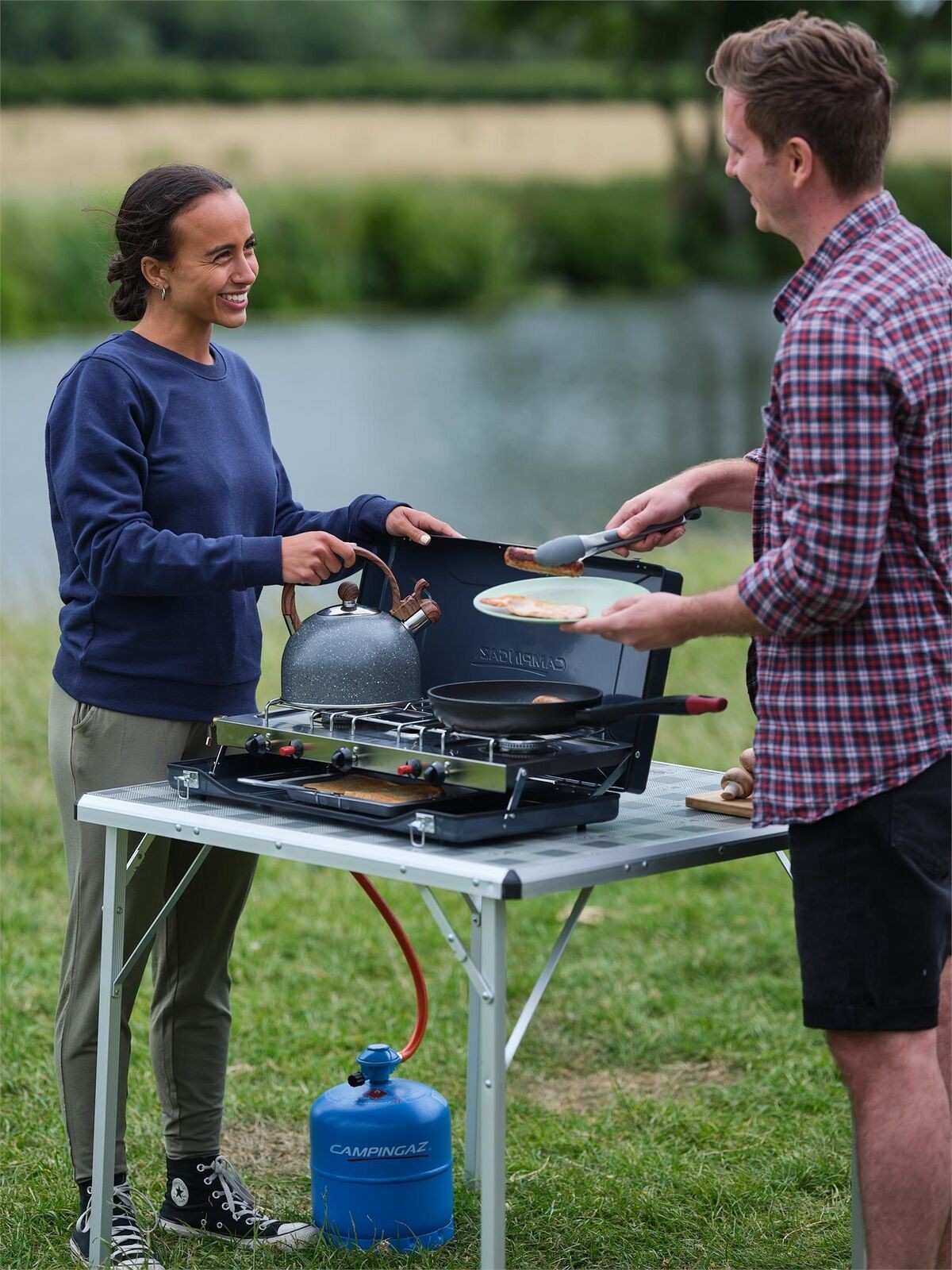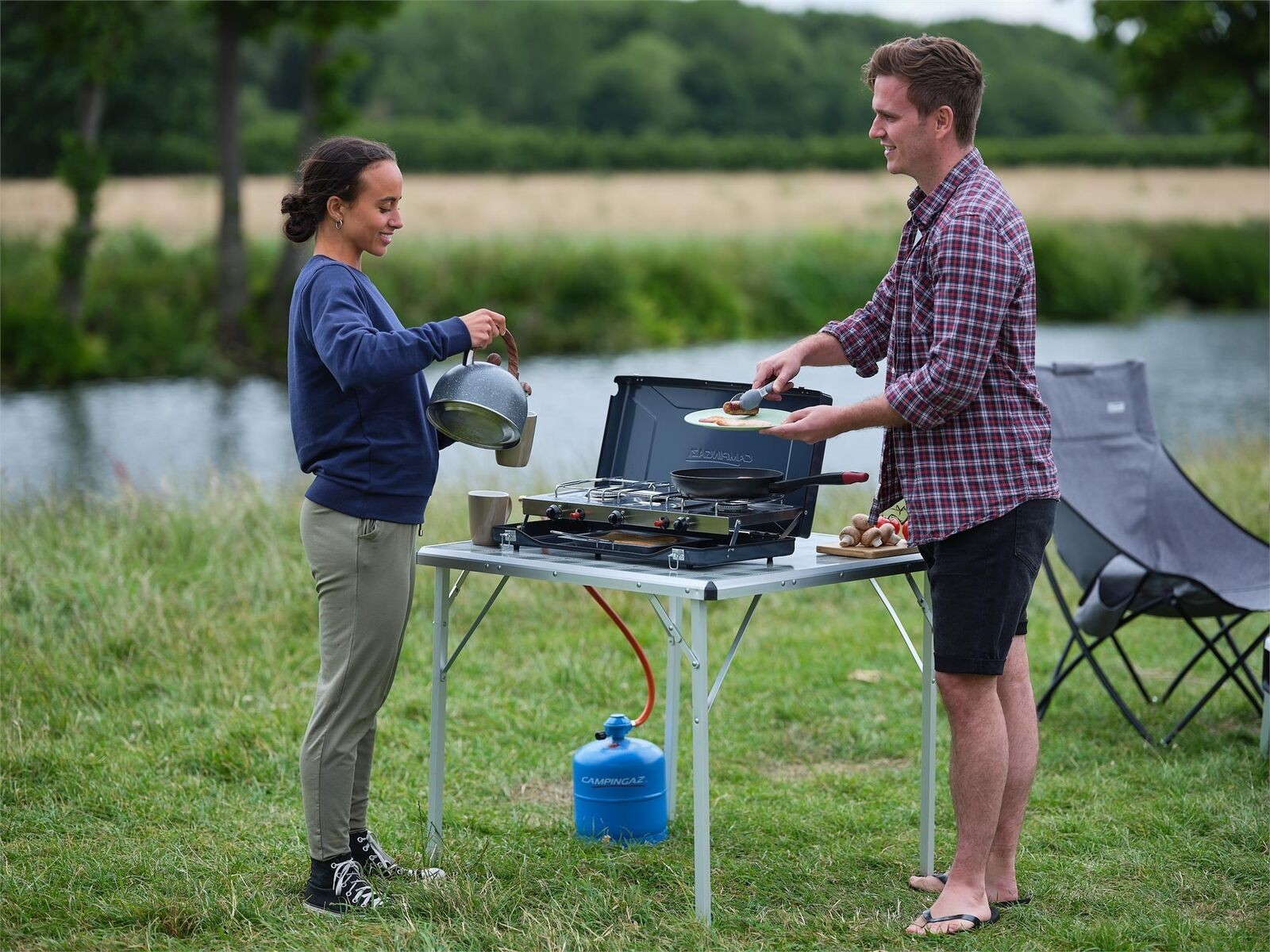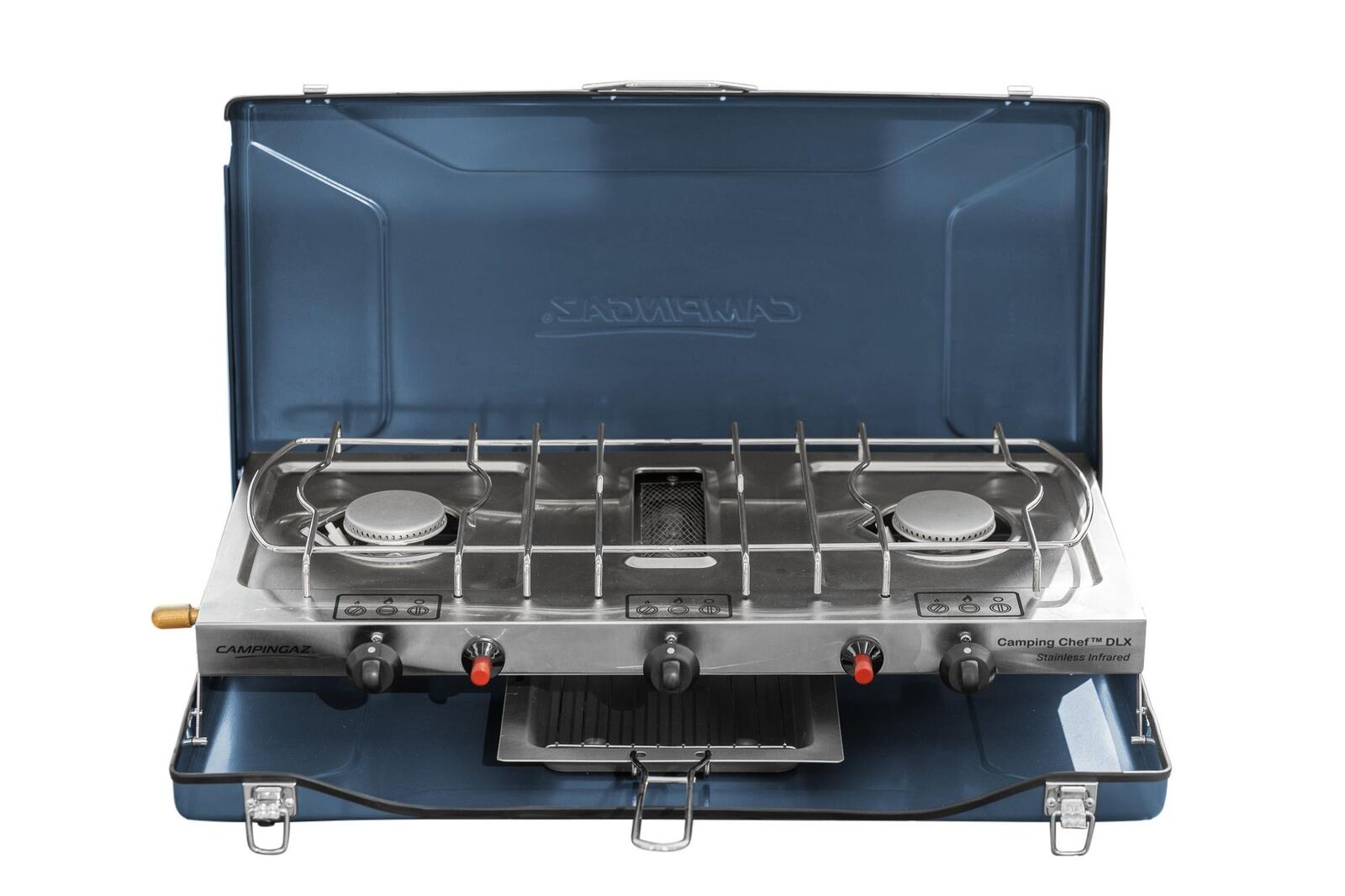 A classic, 2 burner stove with an additional radiant grill – perfect for making tea and toast on the move. Featuring child safety knobs and integrated wind shields, the Camping Chef is ideal for family cooking in all conditions. An innovative grill pan with useful dents for optimum cooking and storage is supplied with the stove. It is easy to clean thanks to removable, stainless steel burners and packs down neatly for easy transportation at the end of a trip.