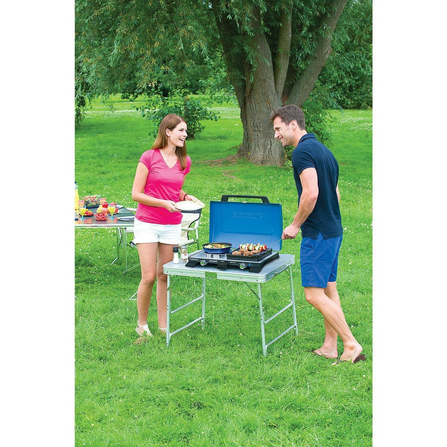 With Piezo ignition and stable table-top supports for maximum convenience, the stove’s neat, fold-away design ensures it takes-up minimal space inside a car or tent.