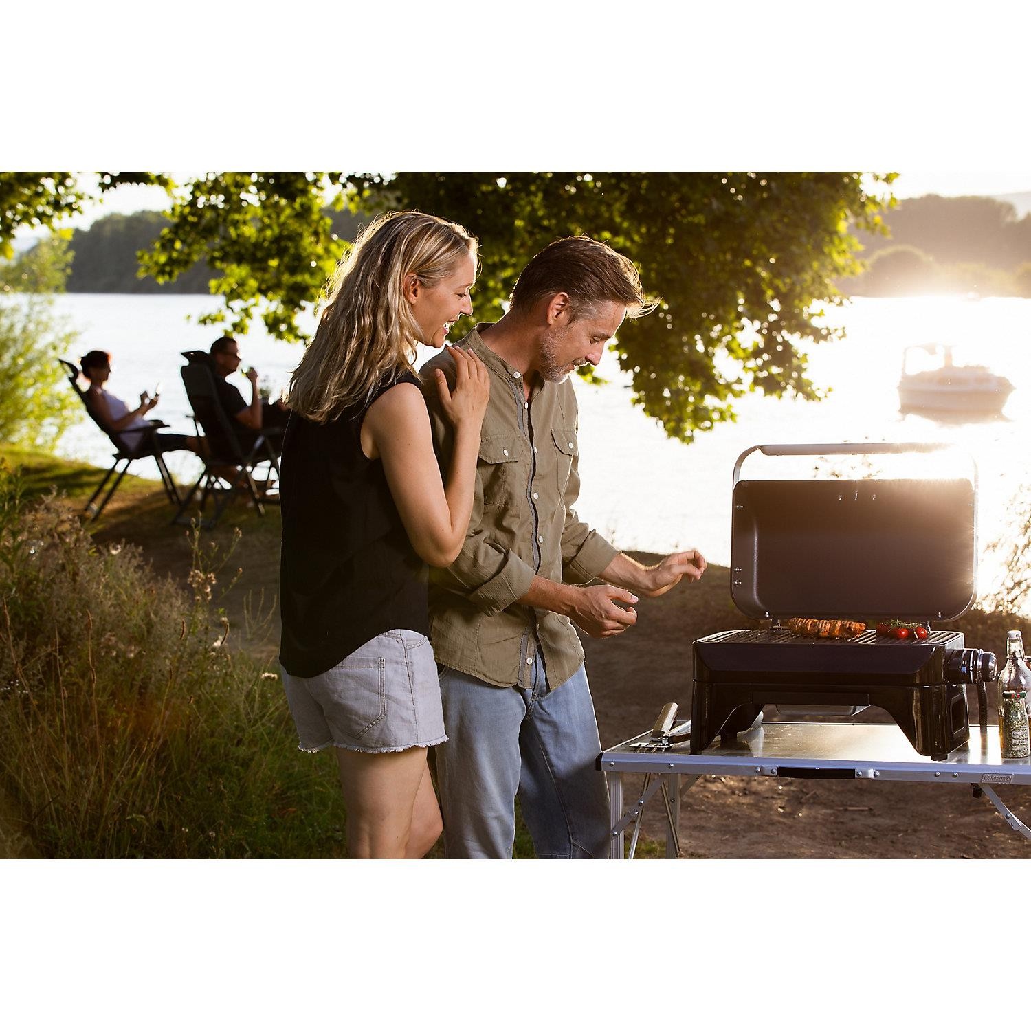 Attitude 2go brings barbecue pleasures to all who want to stay flexible! This table top barbecue pairs sleek, urban styling with pioneering precision cooking, all within a compact, portable package. Intuitively designed for effortless barbecuing, it benefits from perfectly even heat distribution thanks to the powerful stainless steel burner. Key product features: Pre-assembled table top grill – no screwdriver required! Front loading grease tray is dishwasher safe, which ensures quick and simple cleaning. Elegantly matte black die cast aluminum lid retains heat and ensures convection grilling. Includes hose and regulator with Easy Clic® Plus conection for use with Campingaz CV470 Plus cartridges. 10 year warranty on the die cast aluminium lid and 5 year warranty on the enamelled cast iron cooking grids.