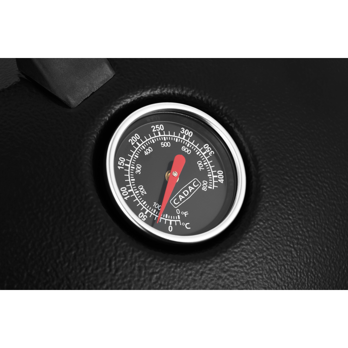The dome lid, with stay-cool handle and thermometer, hooks onto the side of the BBQ to act as a windshield, and the utility shelf provides convenient tools and condiment storage.