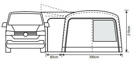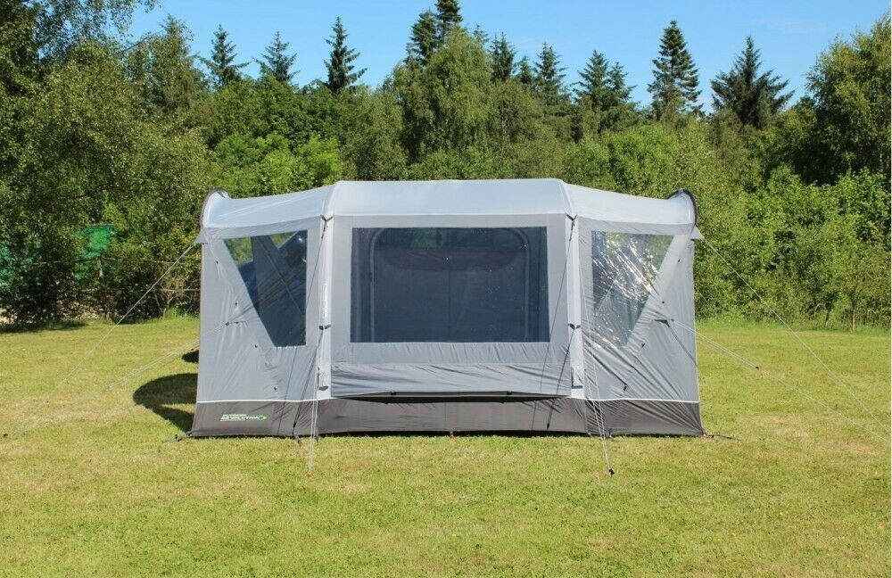 The innovative and versatile Cayman Combo Air drive-away awning offers mirrored access from both front and back of the awning, giving complete flexibility to suit individual needs. This means the awning can be flipped to fit on both left and right sides of a vehicle. This hybrid awning is pitched using both air tubes and poles and is available in two ergonomic cowl height options to offer a great fit to the vast majority of campervan or motorhomes with a rail height of up to 255cm. To further enhance the versatility of this awning an optional Porch Door can be added to the front and/or back to give a fully enclosed usable space outside the main living area. Additionally a ‘Cabin Inner’ bedroom can be purchased to be used inside one or both porches to effectively create a vis-à-vis style configuration with a maximum sleeping capacity of 6! The Cayman Combo Air comes with a wealth of features including a ‘fold-flat’ sewn-in groundsheet, and mesh fly screen panels on all doors. Look no further than the Cayman Combo Air for style and versatility at a great price.