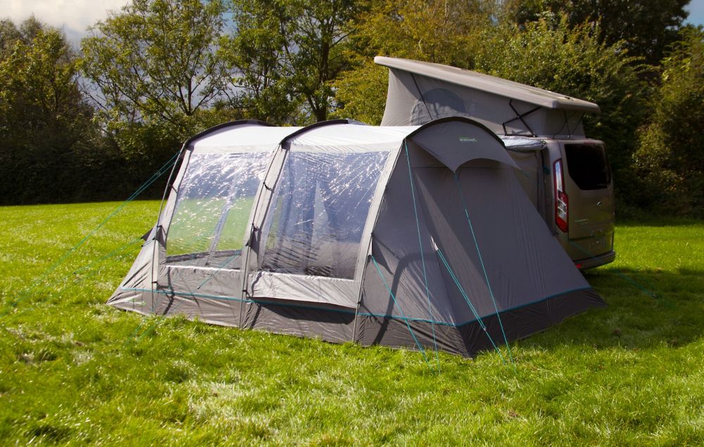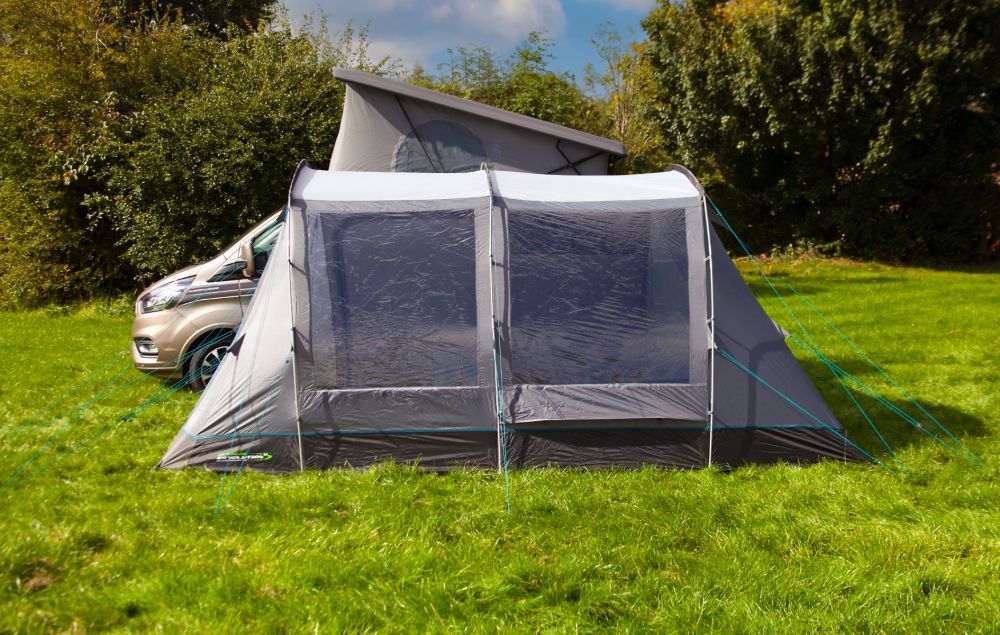 This Dura Tech fibreglass poled family drive away awning is available in two ergonomic cowl height options to offer a great fit to the vast majority of campervan or motorhomes. The unique design means it is one of the most versatile drive-aways on the market, offering access from all sides of the awning through the large roll back doors. New for 2025 is the option to zip a Bedroom Annex to the back of the awning, meaning your main living space is not affected if you are looking to add sleeping space.