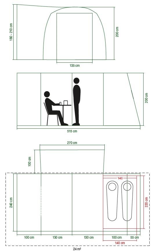 - Dimensions (L x W x H): 515 x 240 x 200cm plus connecting tunnel: 100cm