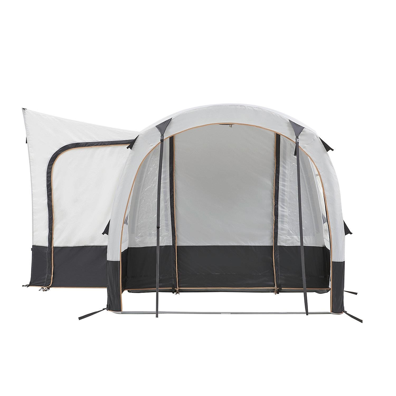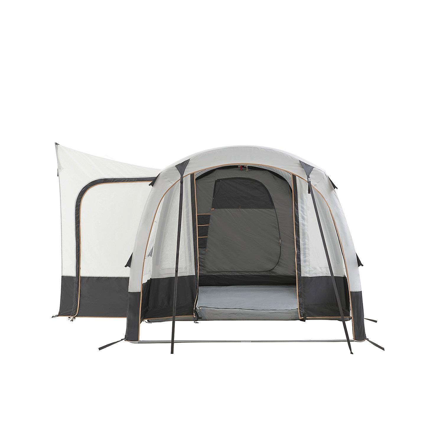 The attached bedroom sleeps two people, is extra-large and will comfortably fit larger airbeds. The bedroom includes a Polyester floor for a more comfortable feel and features BlackOut Bedroom® technology blocking daylight, reducing the temperature during the day and increasing it at night, ensuring a more restful sleep.