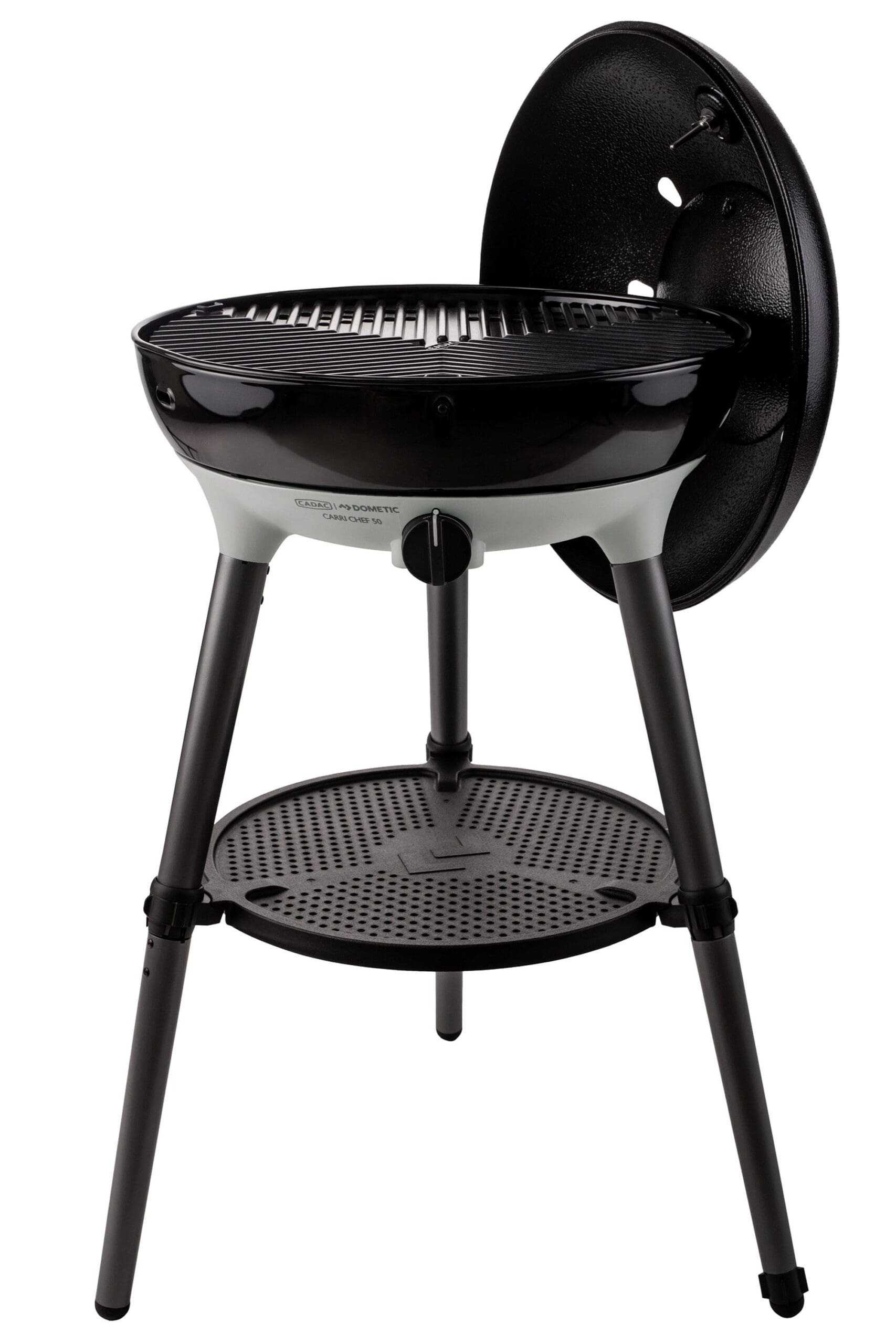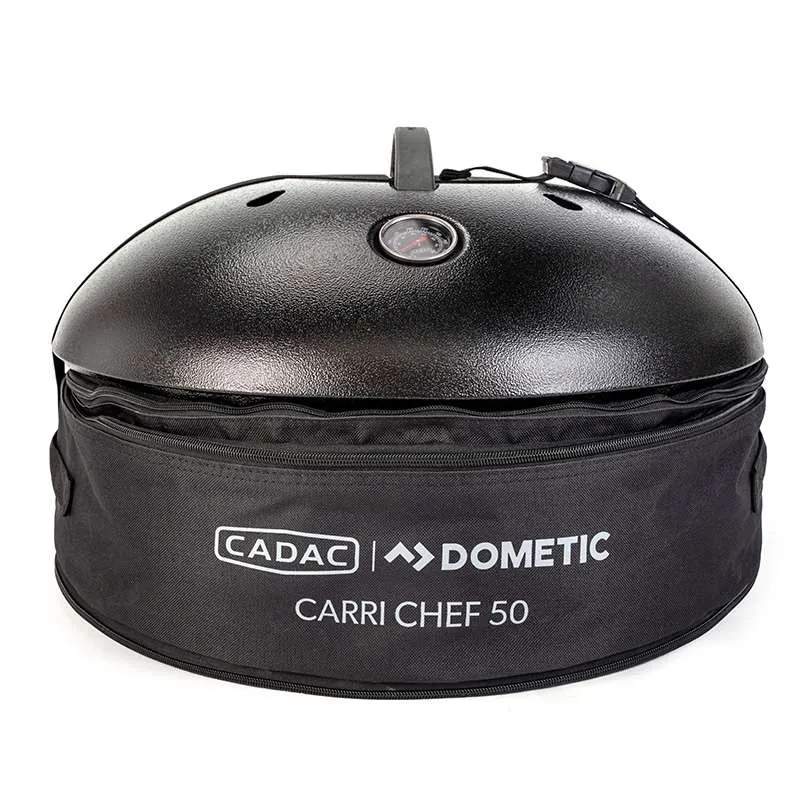 The Carri Chef 50 BBQ Paella Pan QR comes with a ceramic coated BBQ Grid; perfect for grilling burgers, kebabs and vegetables. The popular Paella Pan 50 is also included, perfect for cooking virtually anything. Cook up anything from curries, pasta and risottos, to pancakes and fried eggs in a morning. Easy to clean, simply wash the GreenGrill ceramic cooking surfaces in hot soapy water following use. A removable pot stand is also included for use with your own kettle and pans or the Cadac Dometic Pizza Stone Pro 50, and the utility tray provides ample storage space for condiments and tools.