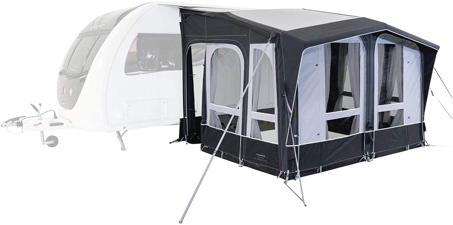 The Dometic Club AIR All-Season 330 S is the absolute pinnacle of all year round awnings. Its premium-tier design and materials choice makes it one of the best awnings on the market, Dometic has pushed the bar even further for the 2021 Season, we think this is going to be one of the most highly sought-after items this year due to its pristine quality of construction. The structure is made from a Weathershield™ All-Season Flysheet and it uses Airframe Technology to replace traditional poles. The interior is spacious with up to a 9m² area for your living area, there’s plenty of room for furniture and utilities, and they’re all fully protected by the awnings exceedingly great fabrics and structure shape. The awning is also adjustable between height a range of 235cm – 265cm to make sure it can fit as many caravans models as possible.