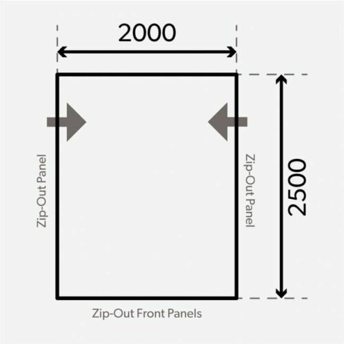 • Simply unzip gussetted awning side panels, peg awning down to fine tune fitment then close external zips to hide excess material