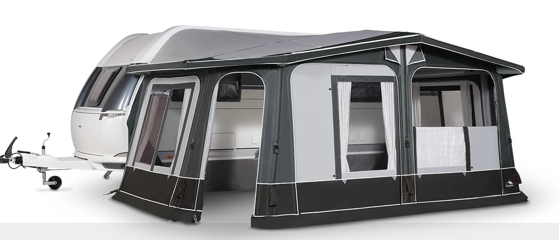 A majestic feeling through lots of space, light and first-class materials. The first full Air awning with a depth of 280 cm. Specially developed to create a luxurious and spacious space with lots of light for your caravan. The Luxor Air 280 is fully inflatable and has a modern design with double mud flaps.
