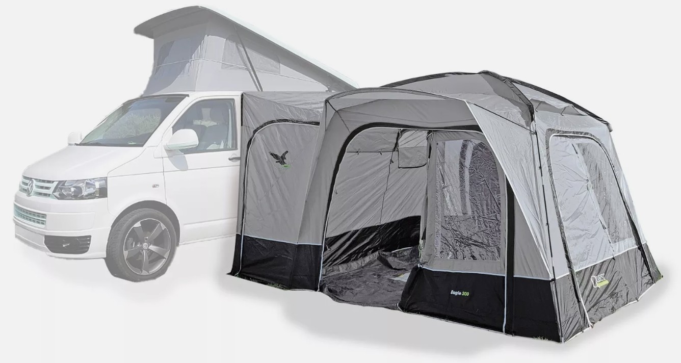 The Eagle Drive Away Awning offers the ultimate flexibility, available in both air and poled options, and designed to fit vehicles with a height range of 180-210cm (low) or 240-270cm (high). Whether used as a freestanding tent or attached to your vehicle, it provides a versatile and spacious outdoor shelter, perfect for a variety of camping setups.
