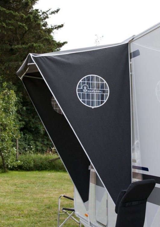 This door canopy is incredibly flexible; you can quickly assemble it when you cannot erect an awning, for example when you are parked on concrete and it will fit most caravans!