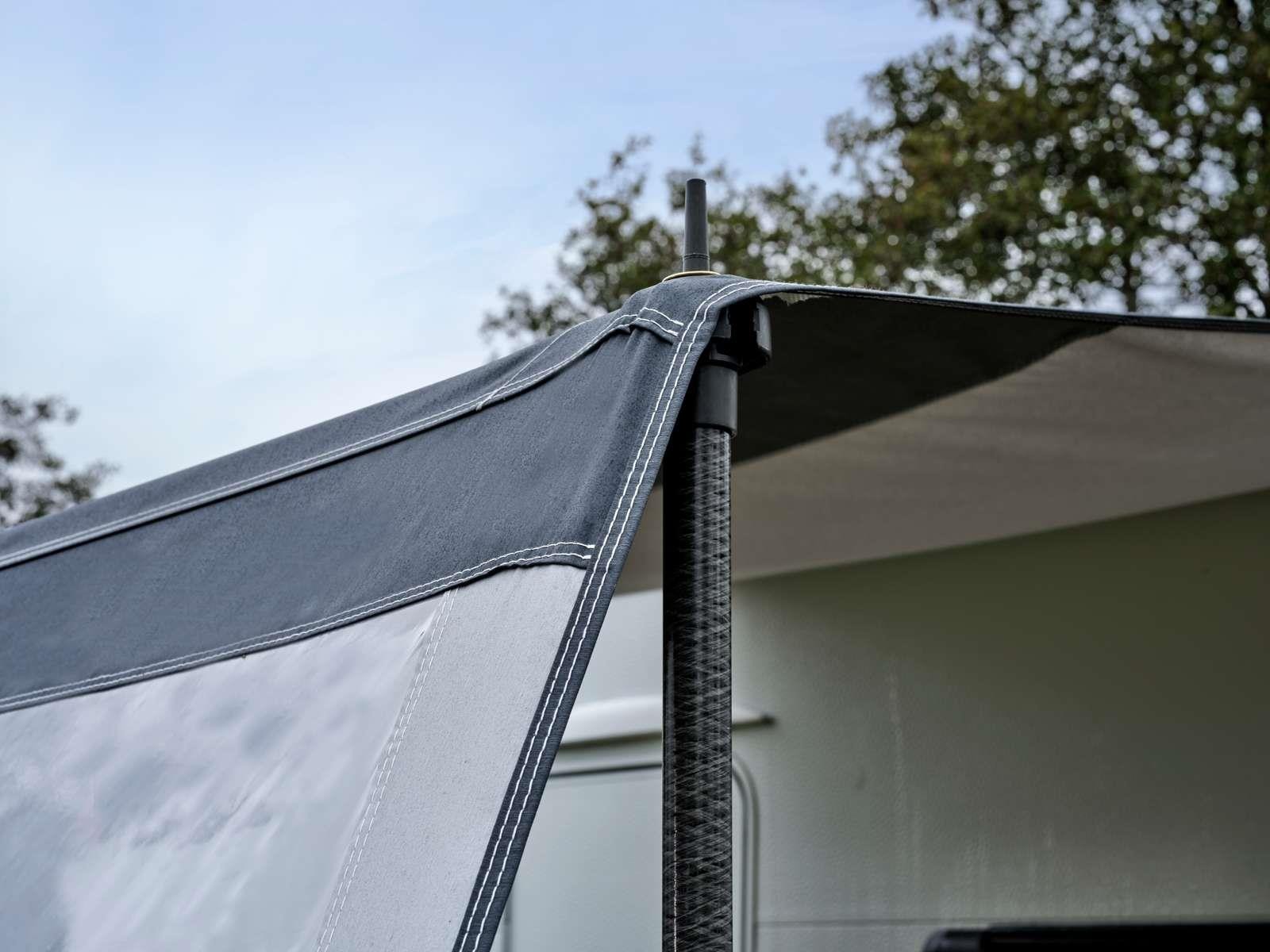 If you want more than just a sun canopy that provides shade, Shade is an ideal solution. It consists of a roof and an integrated front to provide extra shelter from the wind at the front. Shade is mounted directly on a caravan with a rail height of 210-260 cm.