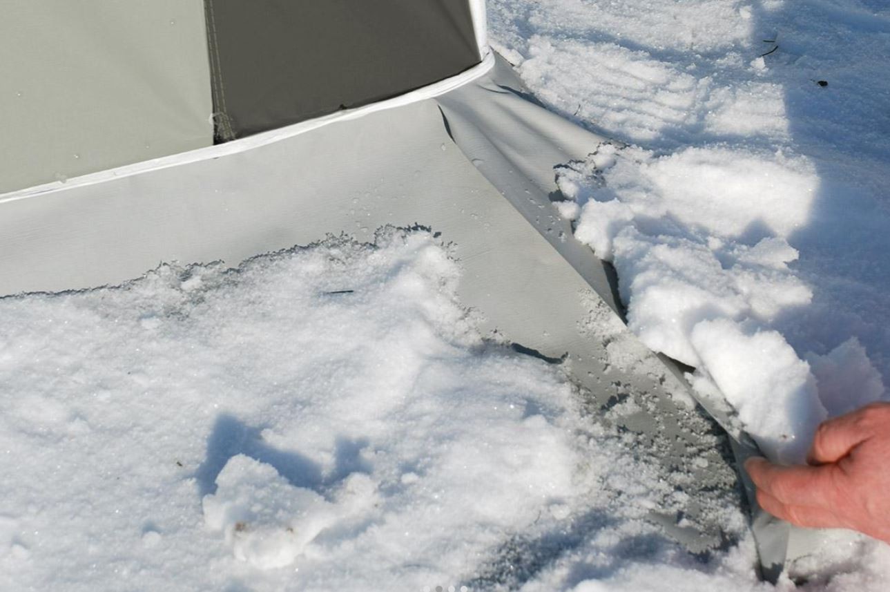 Thanks to the heavy-duty materials, a special roof angle to prevent the build-up of snow, an extra wide external mud flap, a strong steel frame, flexible pegging and window foil designed to withstand extreme temperatures,