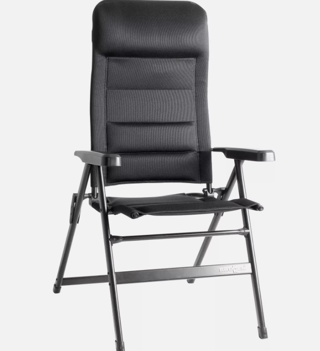 Modern folding 4-legged outdoor chair with 7-position reclinable backrest.