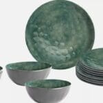 Brunner Venetian Sea Green Midday Stone Touch Melamine 12 Piece Dinner Set with Anti Slip Base Ring