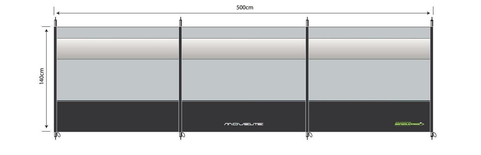 The four poled Movelite Windbreak is a fantastic addition to Outdoor Revolution’s premium three panelled windbreak range, designed to complement their latest range of ‘Movelite’ Drive-Away awnings, with its contemporary graphite/ivory colourway and co-ordinating heavy-duty double rip-stop fabric. This robust accessory measures 5m wide and 1.4m tall, providing excellent protection against the wind across an extensive area to lessen detrimental effects on your awning, so that you can kick back and relax, in any weather!