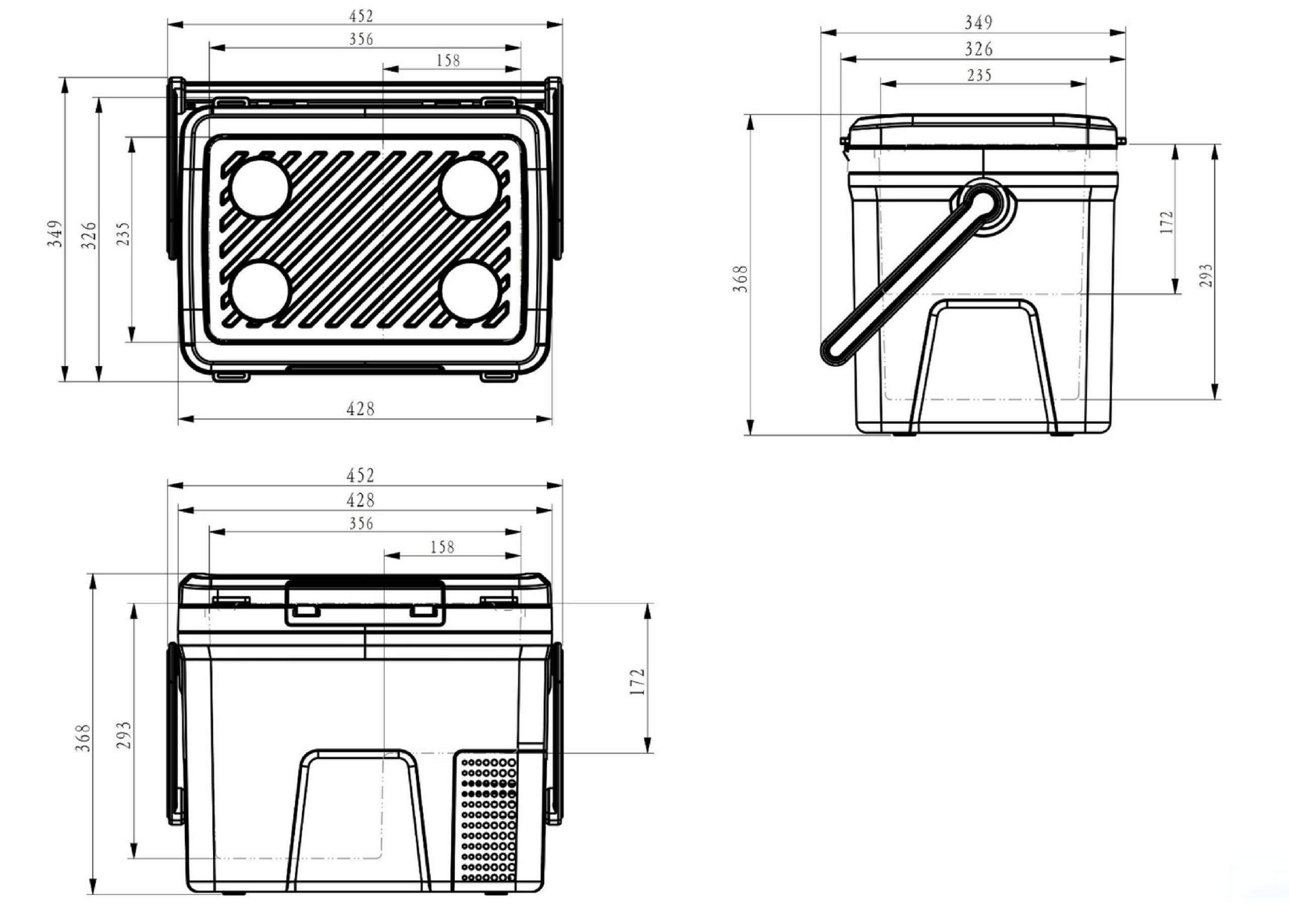 - Fridge Dimensions (mm): L 452 x W 346 x H 368