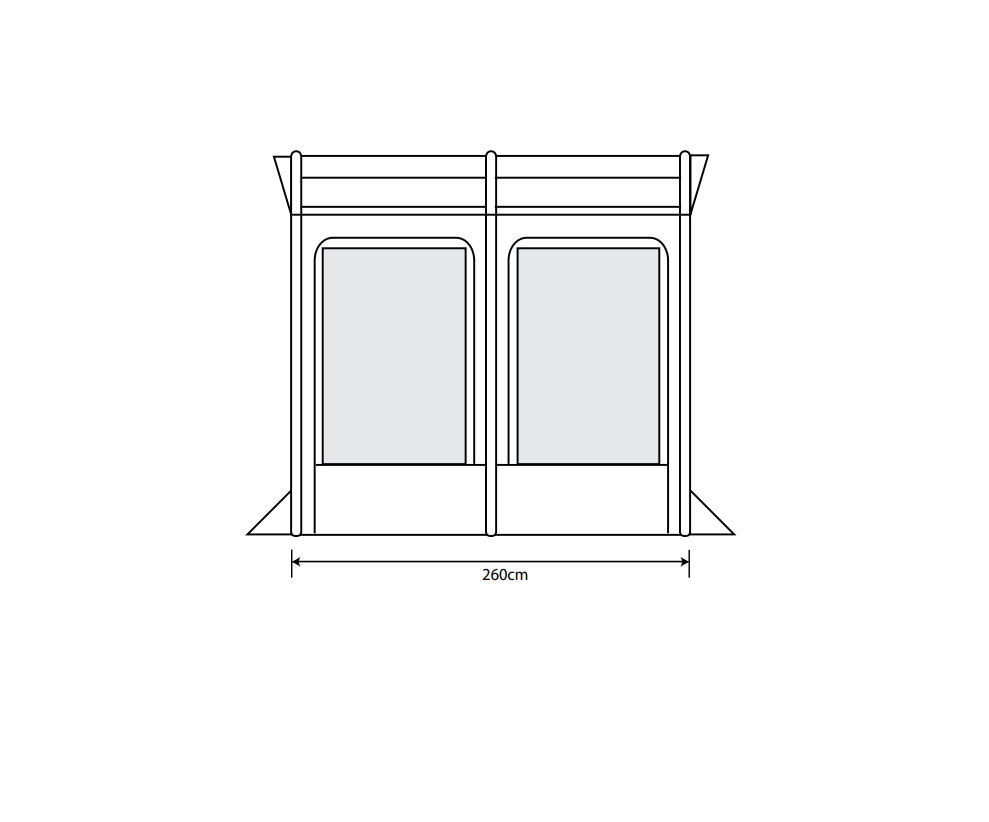 Expansive window panels permit an excellent vista of the outside world; these are accompanied by toggle-in curtains, which can be rolled back, set at half way or completely closed for maximum privacy on an evening. The Twin Piping (6mm x 4mm) enables compatibility with caravans and motorhomes, within the corresponding height range.