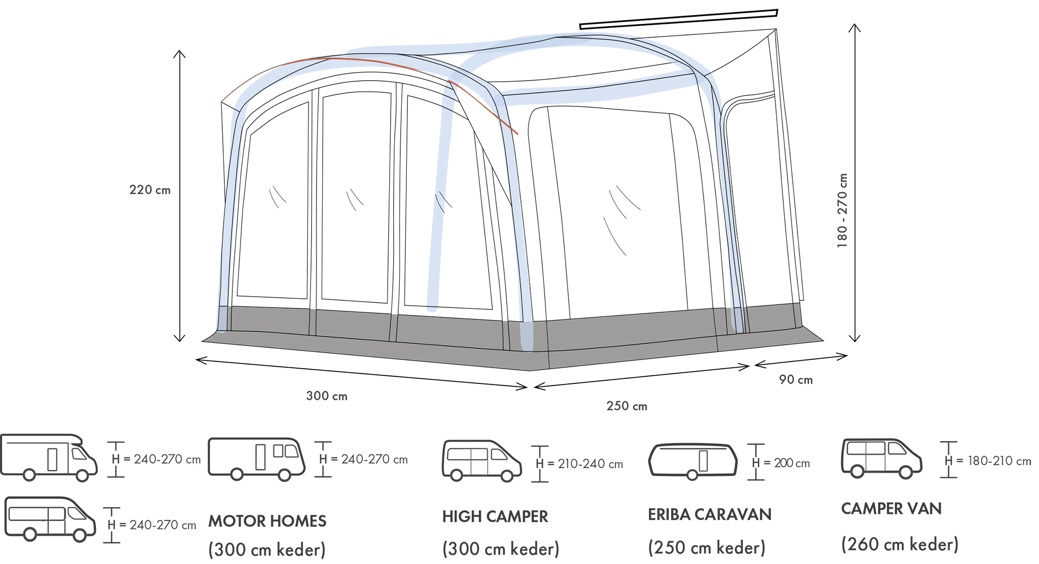 - Size: 300 x 250 x 220 cm