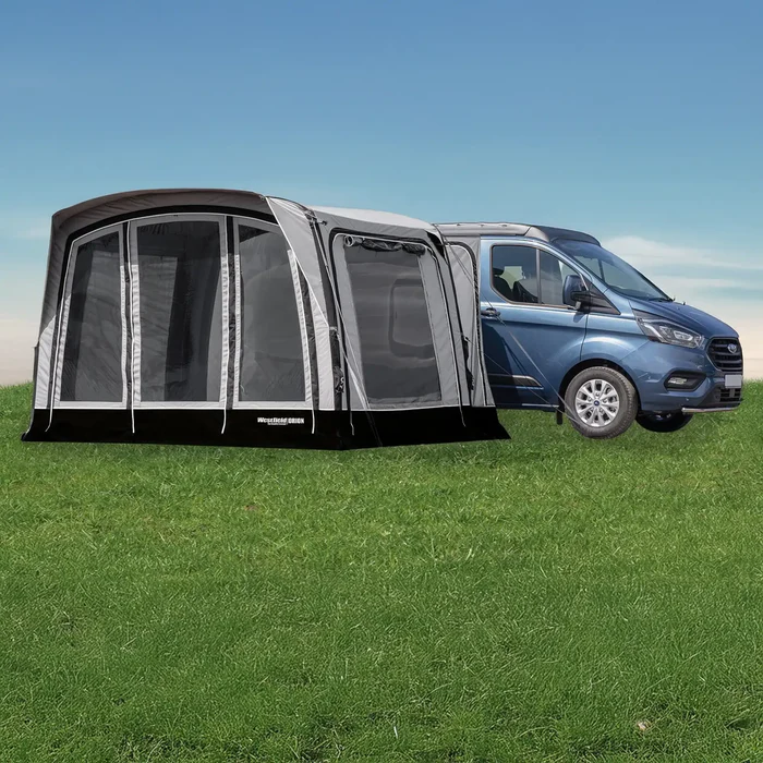 The Westfield Orion 2 Performance Drive Away Air Awning is a premium solution for campervan and motorhome owners, offering both luxury and adaptability. Designed for convenience, the Orion’s zippered tunnel system (tunnel not included) attaches to vehicles with heights between 180 and 270cm or can be used as a freestanding tent. If you upgrade vehicles, simply switch the tunnel attachment without needing a new awning.
