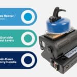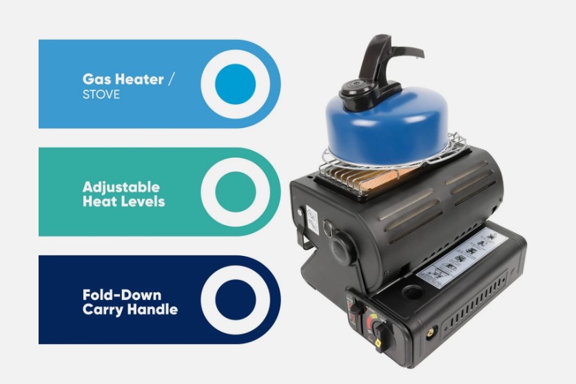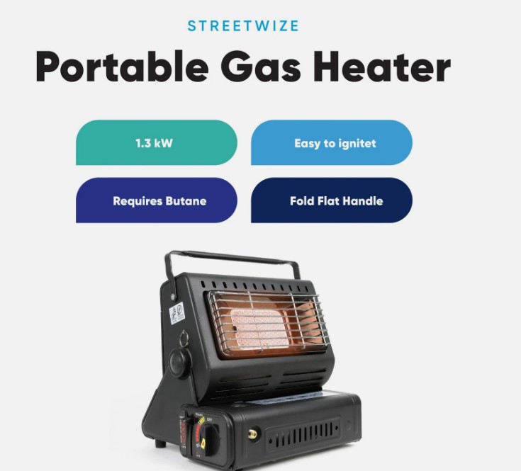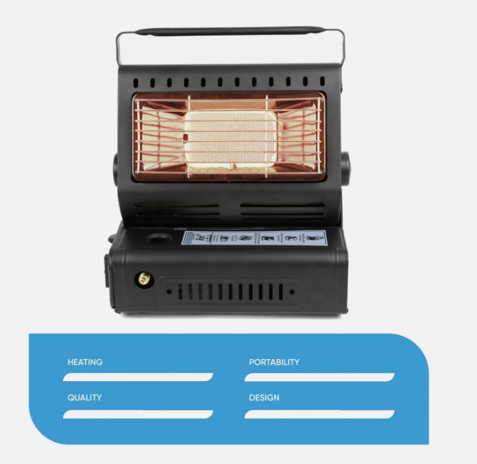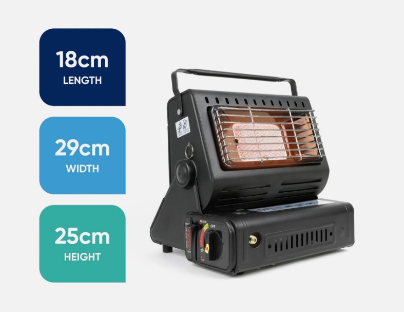 This 1.3 kW portable outdoor gas heater is ideal for use outdoors when caravanning, fishing, attending festivals, or at home in the garden, providing extra heat on cooler evenings. It is lightweight, portable, and has easy-to-use controls. The base gas heater allows you to carry it easily with the handy carry handle.