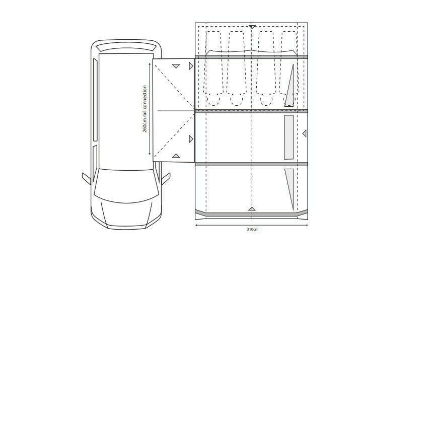 - Footprint: 310 x 515cm (+100cm cowl depth)
