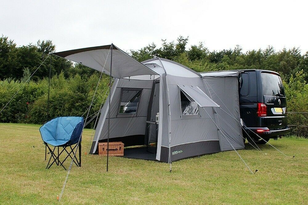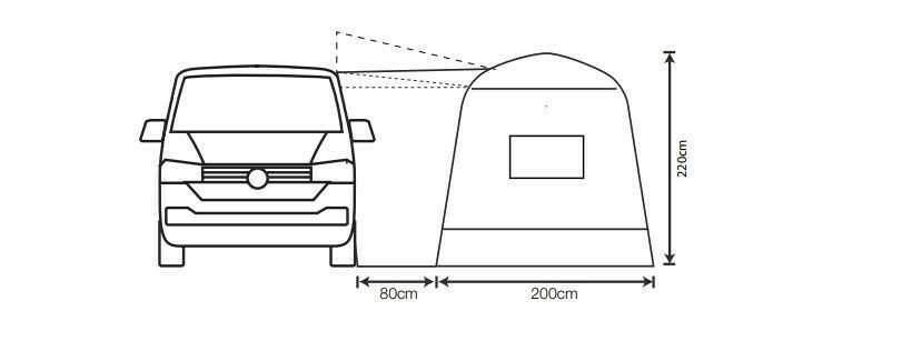The bestselling lightweight Cayman Outhouse Handi pole-and-sleeve Drive-Away awning functions as a compact multi-purpose utility tent, which can be fixed alongside a campervan or motorhome and carries freestanding capabilities. A perfect addition to any touring arrangement, granting an indispensable extension of usable space, making it perfect for use as a dining, cooking, relaxation, storage, pets, toilet or shower area. Now available in 2 ergonomic cowl sizes to fit a vehicle rail height of up to 255cm, the Outhouse Handi is very simple to pitch using just 2 robust fibreglass poles. We have introduced crystal clear window panels and mesh ventilation points on both sides of the awning to maintain an airy internal space, and a separate peg-down groundsheet giving the option to remove if desired. Exterior zip-down storm covers help to ensure maximum protection against the elements throughout adverse weather conditions, whist roof ventilation points ensure airflow is maintained to reduce condensation. A stylish front canopy can be created using optional canopy poles (available separately), and the internal area can be illuminated in the evening using our optional Lumi Link lighting system which velcros simply into place.