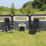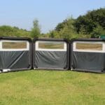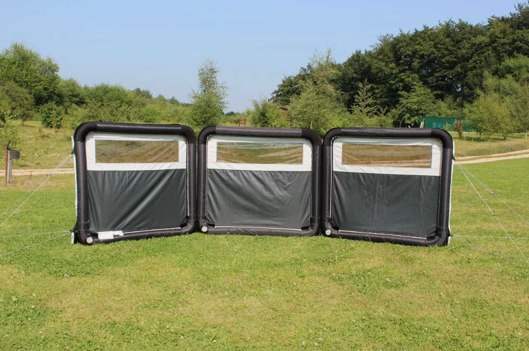 The Oxygen Pro Windbreak is the most practical, flexible and innovative windbreak on the market. Joining Outdoor Revolution’s growing collection of exclusive registered designs; the premium five metre Oxygen Windbreak three-panelled inflatable windbreak has been designed to effectively deflect wind for up to five metres around your touring arrangement, whilst featuring a coordinated design to complement the contemporary aesthetic of our latest caravan awnings, drive away awnings and family tents. The modular design means that this windbreak can be infinitely extended, as much as you desire, using our single panel accessory extensions which simply connect using a plastic figure of 8 section. Each section is flexibly hinged, enabling you to adjust the configuration of the windbreak to suit your personal preference. We have positioned an upper window panel on each section, allowing you to retain an excellent outlook of any surroundings, whilst relaxing behind the windbreak.
