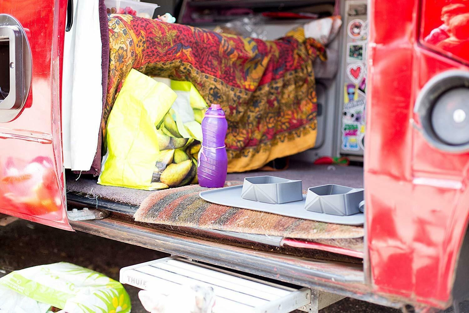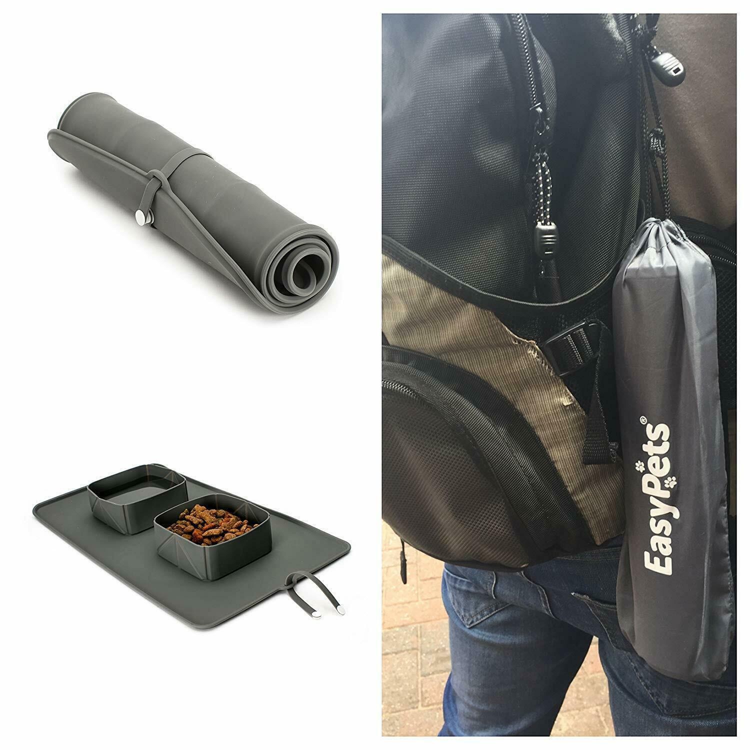 compact portable pet bowl and mat for wherever you want to go with your