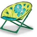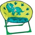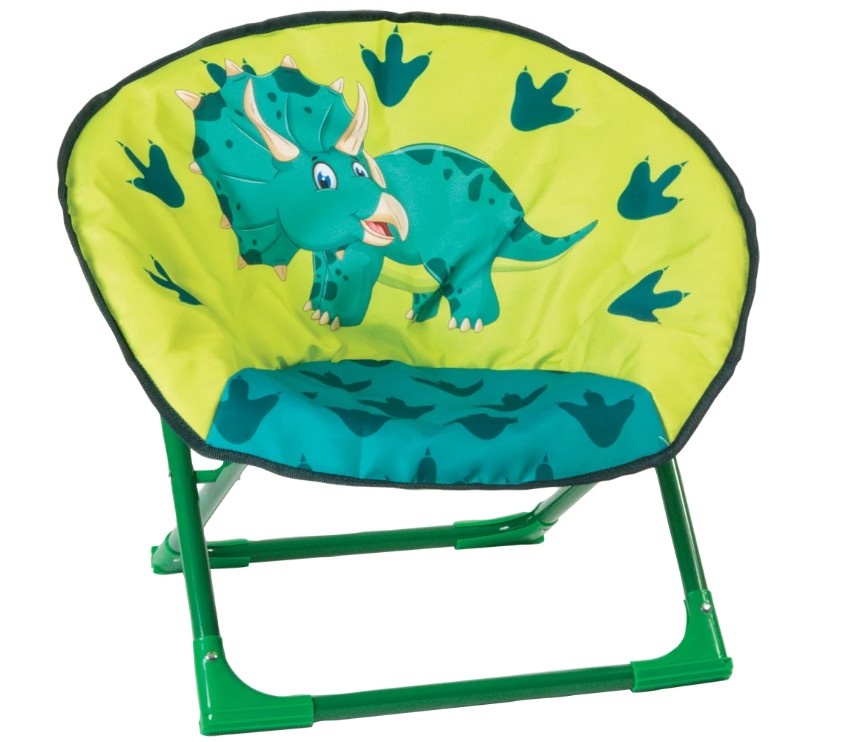 A small childrens sized moon chair. Featuring the Dinosaur design and sporting a green powder coated steel frame The frame folds in and out in seconds and has a built in safety lock to ensure its locked in position. Great fun for children