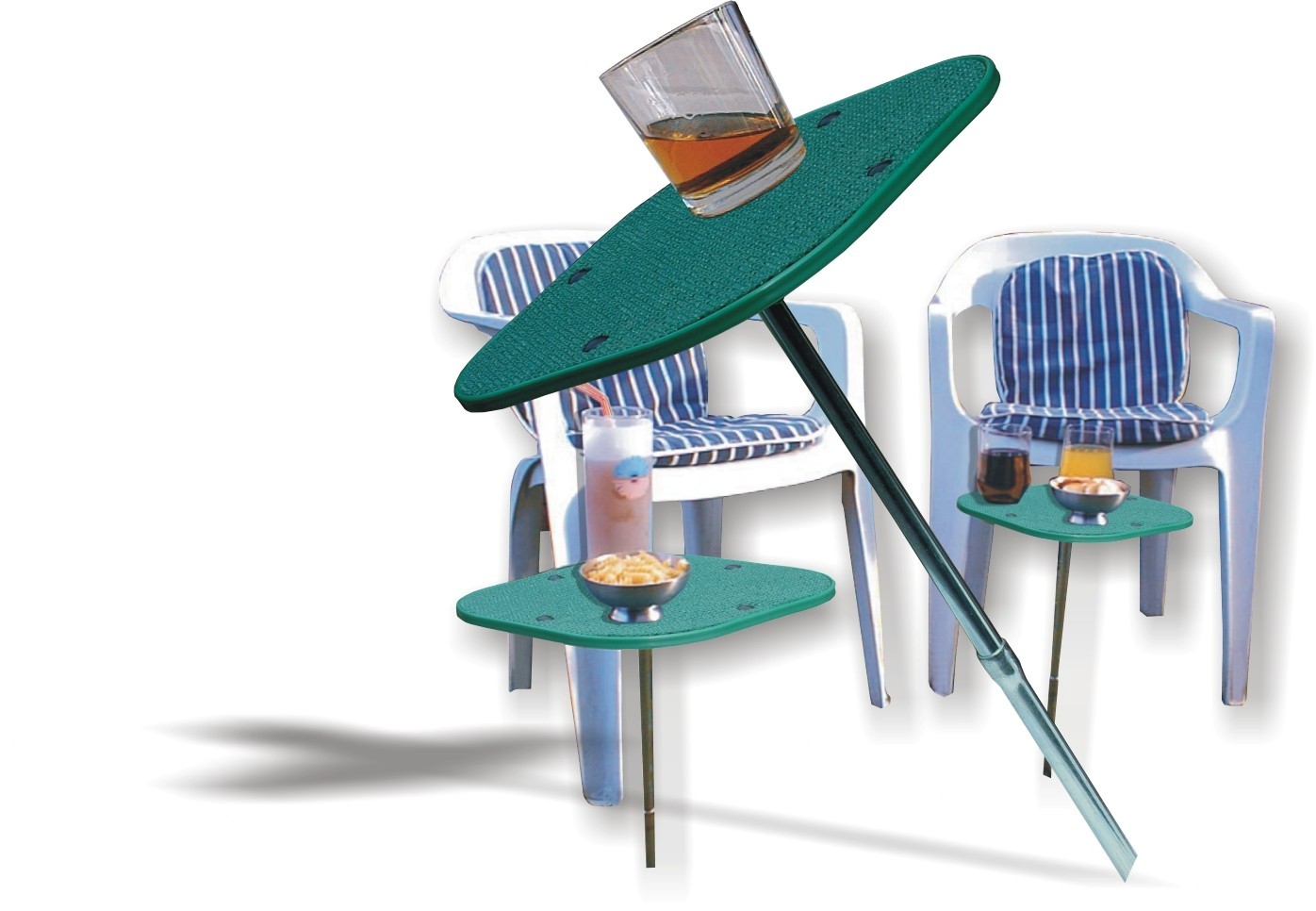 sticks into the ground (hence the name) supporting top measuring
