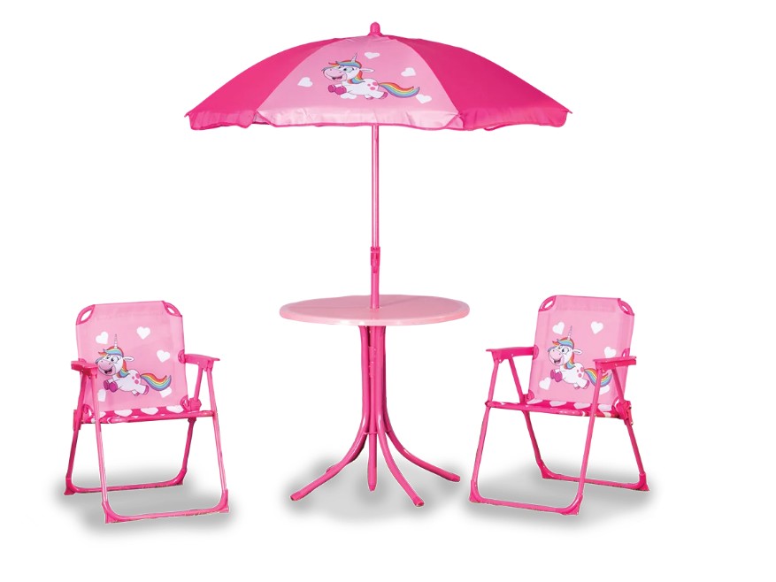 Children’s Garden Table, Chairs and Parasol Set – Unicorn