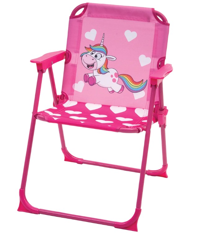 A great fun childrens garden set. Done in the extremely popular Unicorn design and features two folding chairs, table and parasol. The chairs feature a safety lock to help stop fingers getting trapped. They fold flat when not in use so are easy to carry and store. Perfect as a gift, in the back garden or even when on holiday . The Umbrella height can be adjusted to suit.