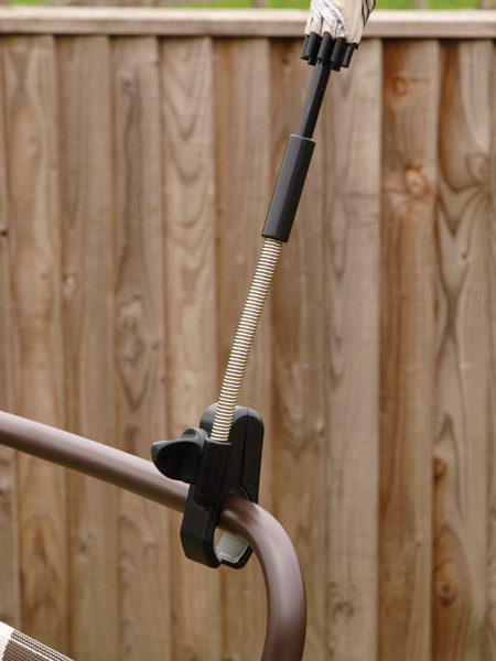 clamp on sunshade. The clamp on sunshade simply clamps onto the chair
