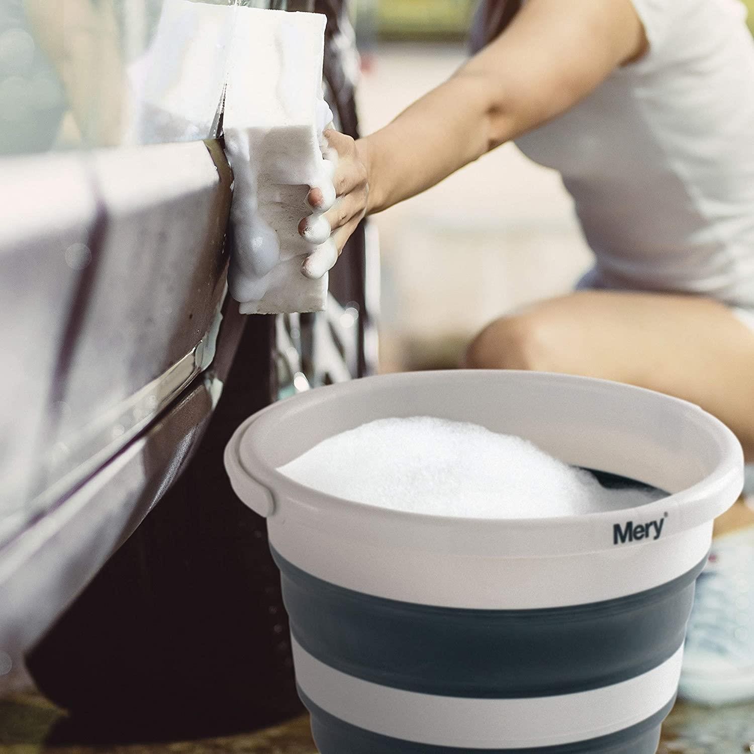 Ideal for campers, this collapsible bucket folds down to a compact size for easy storage and transportation.