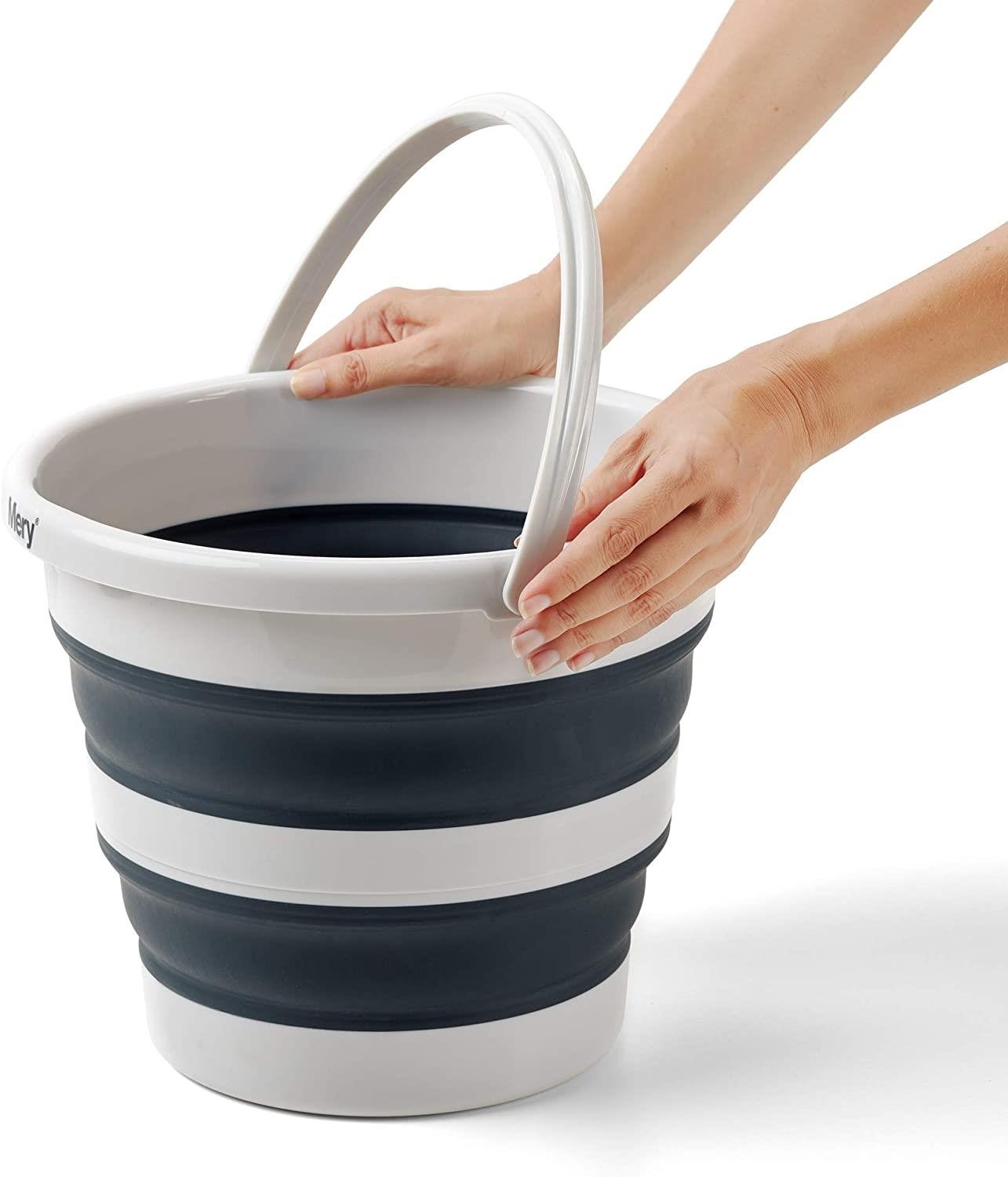 Rayen Mery 12 Litre Collapsible Silicone Sided Bucket – White and Grey