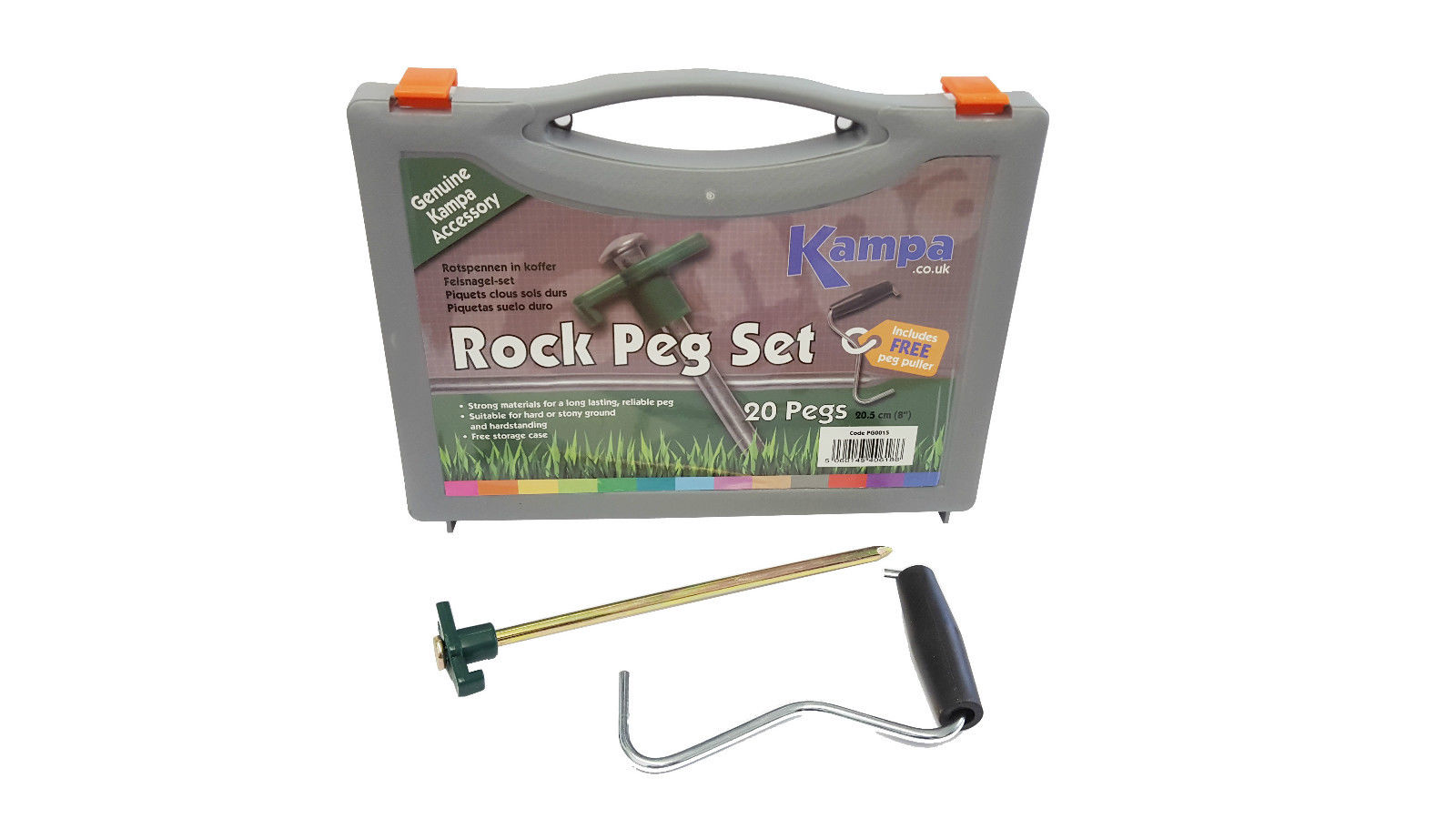 • Pack of 20 Steel Rock Pegs complete with Peg Puller & Hard Case