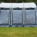 On appearance, the awning sports three independently controlled front panels. All three front panels feature a clear PVC window allowing ample light to flood the interior. Where there is a window, roll back down the blinds and this will give you shading, and privacy should you be using the awning to house extra guests. Above each panel features a ventilation tab that can be propped open by velcro arms and this allows the air to flow to cool the living space and to help reduce the effects of condensation. You can fully open each panel, or with the use of additional canopy poles (not included) prop open any or all offering a canopy-style awning.