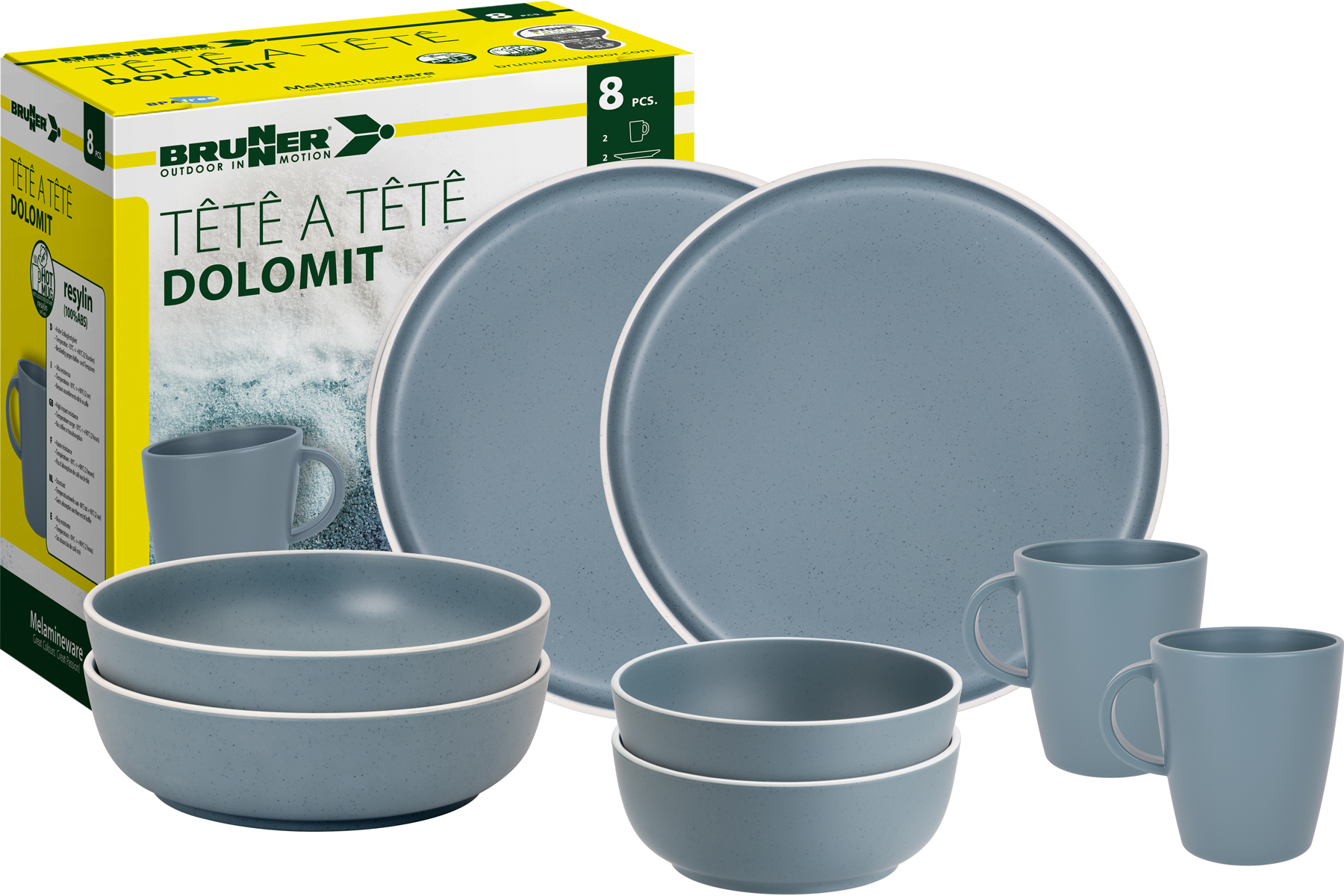 The high-quality melamine crockery is the result of Brunner’s research into an elegant, functional and space-saving solution for every excursion, camping trip or outdoor picnic.