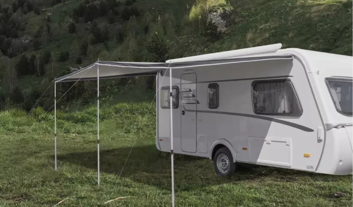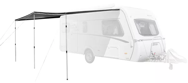 This is a premium lightweight sun canopy called the Shady Pro, it can be used stand alone by sliding directly into the awning rail on your caravan or as an extension to your existing Westfield awning.