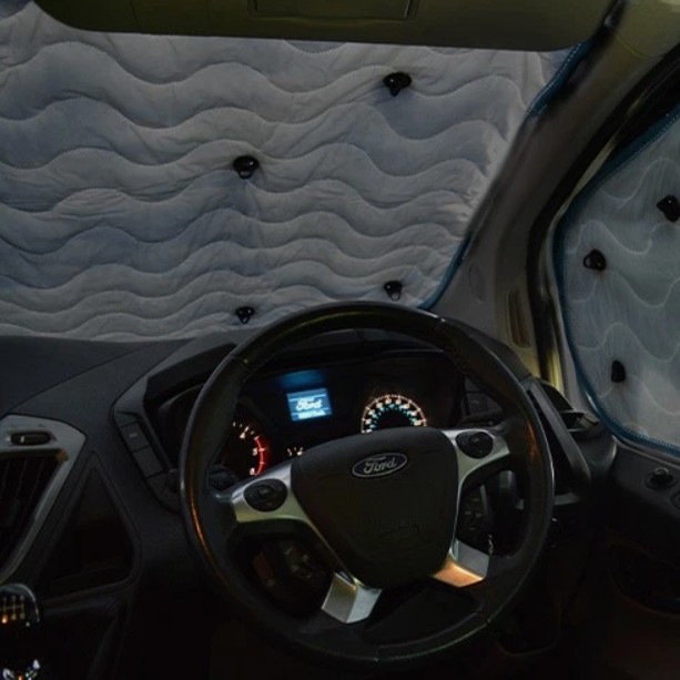 The Transit Custom internal thermal blind has a 5 layer construction that ensures insulation and heat reflection, ensuring your vehicle is kept cool in the summer and warm in the winter.